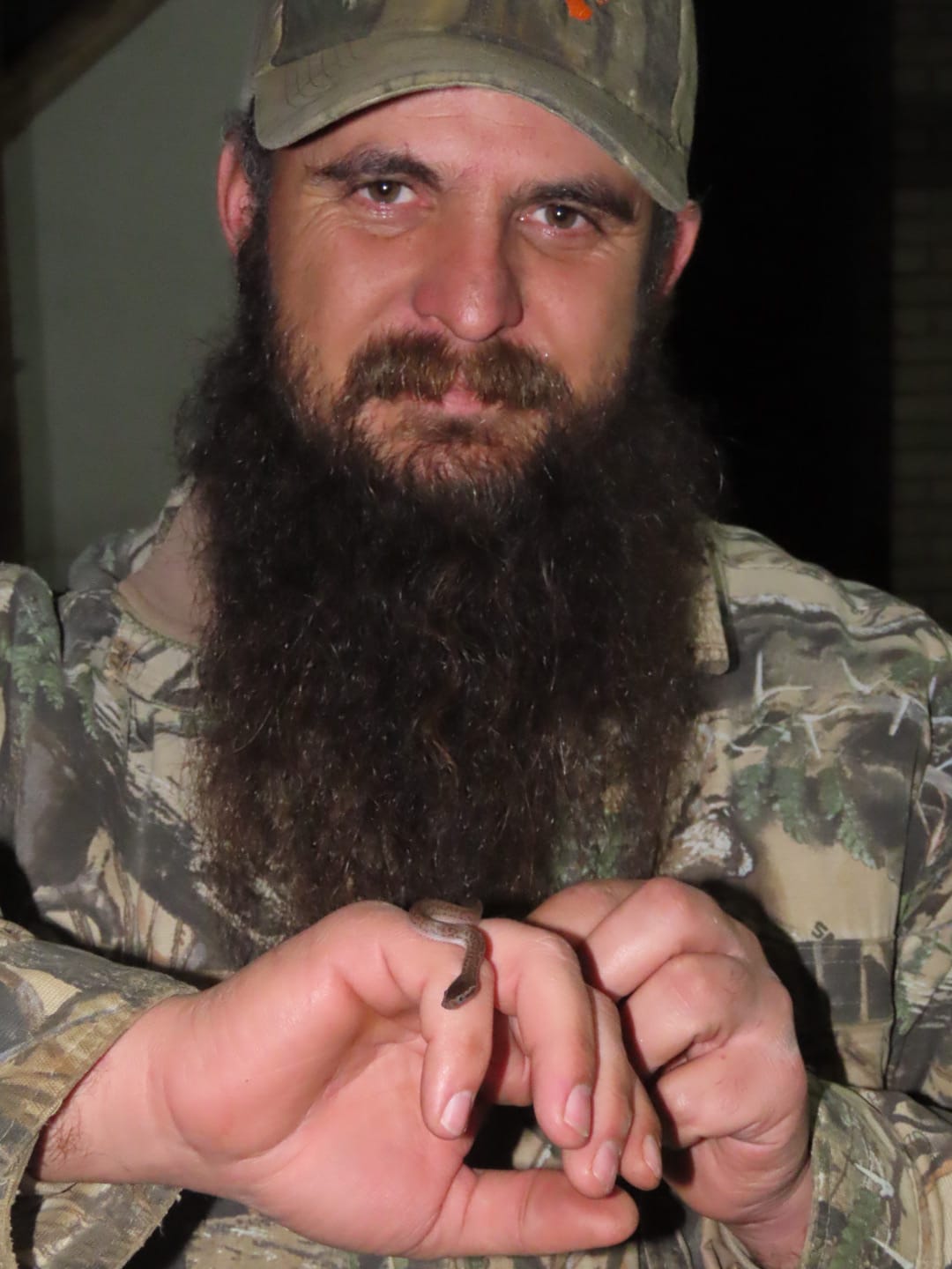 Ek het opgespring, my hart het ‘n slag gemis, en daar, net ‘n entjie van hom af, was ‘n klein bababruin huisslangetjie. En net daar naby, soos ‘n bewaarder, het ons plaaskat, Kallie die Kietiekat, parmantig oor die slangetjie gepronk! Ons het die kat vinnig weggeneem, en soos Johann, met sy sorgsame geaardheid, die piepklein slangetjie wou optel, het die natuur se instink oorgeneem. Die klein slangetjie, ten spyte van sy grootte, het Johann se vinger gebyt. Gelukkig was dit net ‘n klein knypie en niks ernstigs nie. Ons het vinnig ‘n paar foto’s geneem om hierdie onverwagse ontmoeting te verewig, en daarna het ek die babaslangetjie saggies weer op die gras neergesit, sodat dit sy pad kon voortsit, vry om te gaan waarheen hy wou.